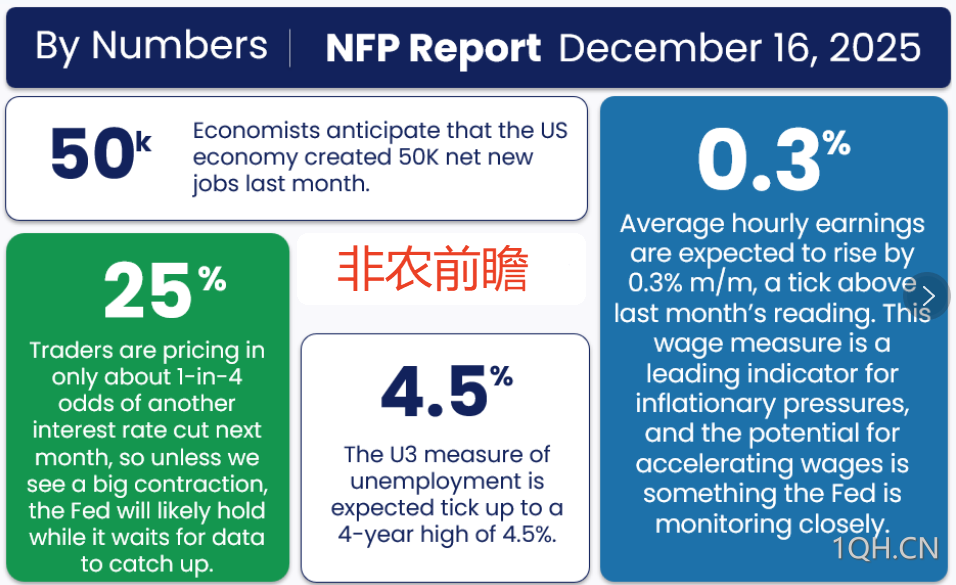 投资者正密切关注本周即将公布的关键经济数据,特别是美国非农就业报告,将于12月16日发布。这份报告涵盖了因政府停摆而延迟的10月和11月数据,可能提供更清晰的经济健康信号。